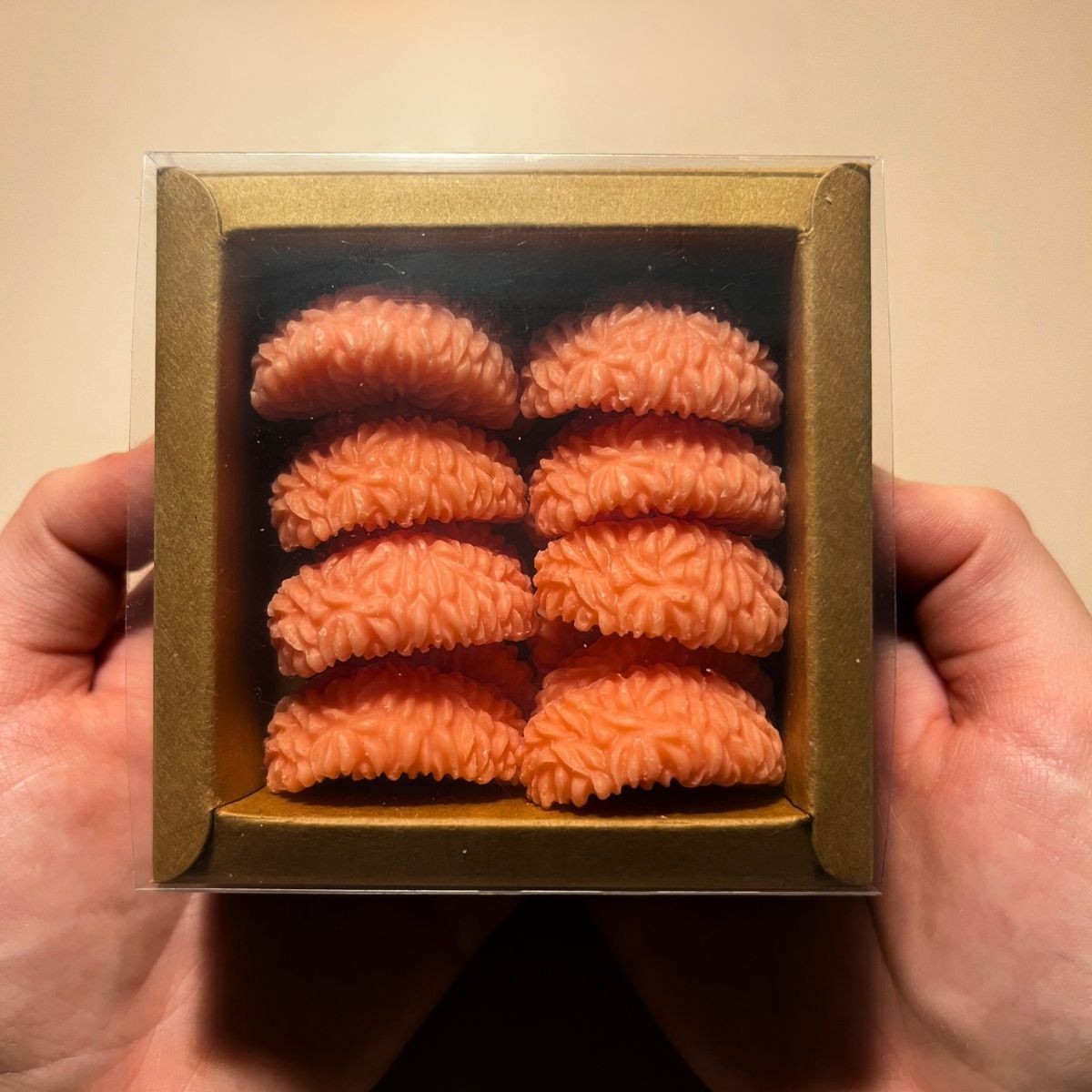 Používám 100% přírodní sójový vosk, který hoří pomalu, rovnoměrně a čistě – bez kouře a sazí. Je šetrný k domovu