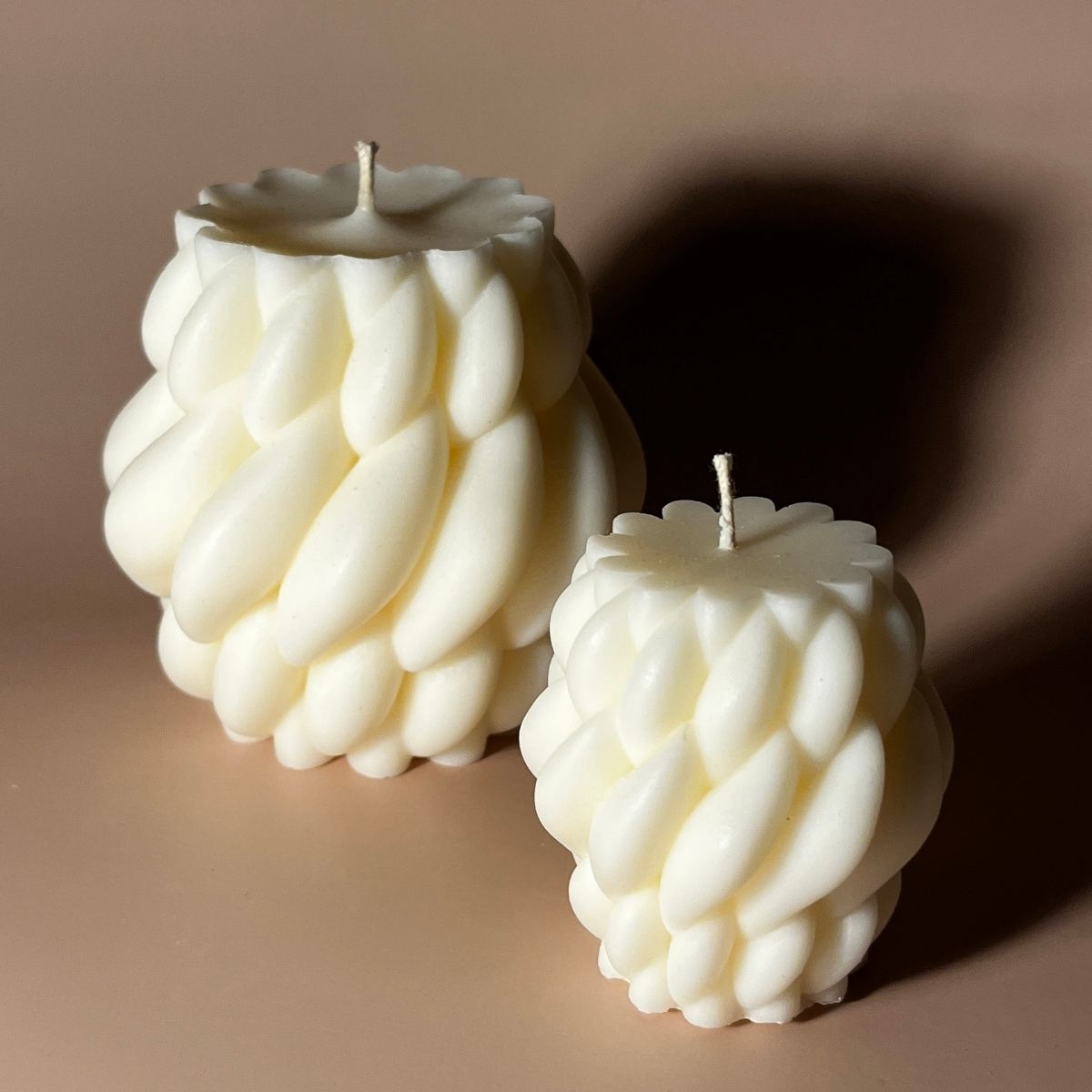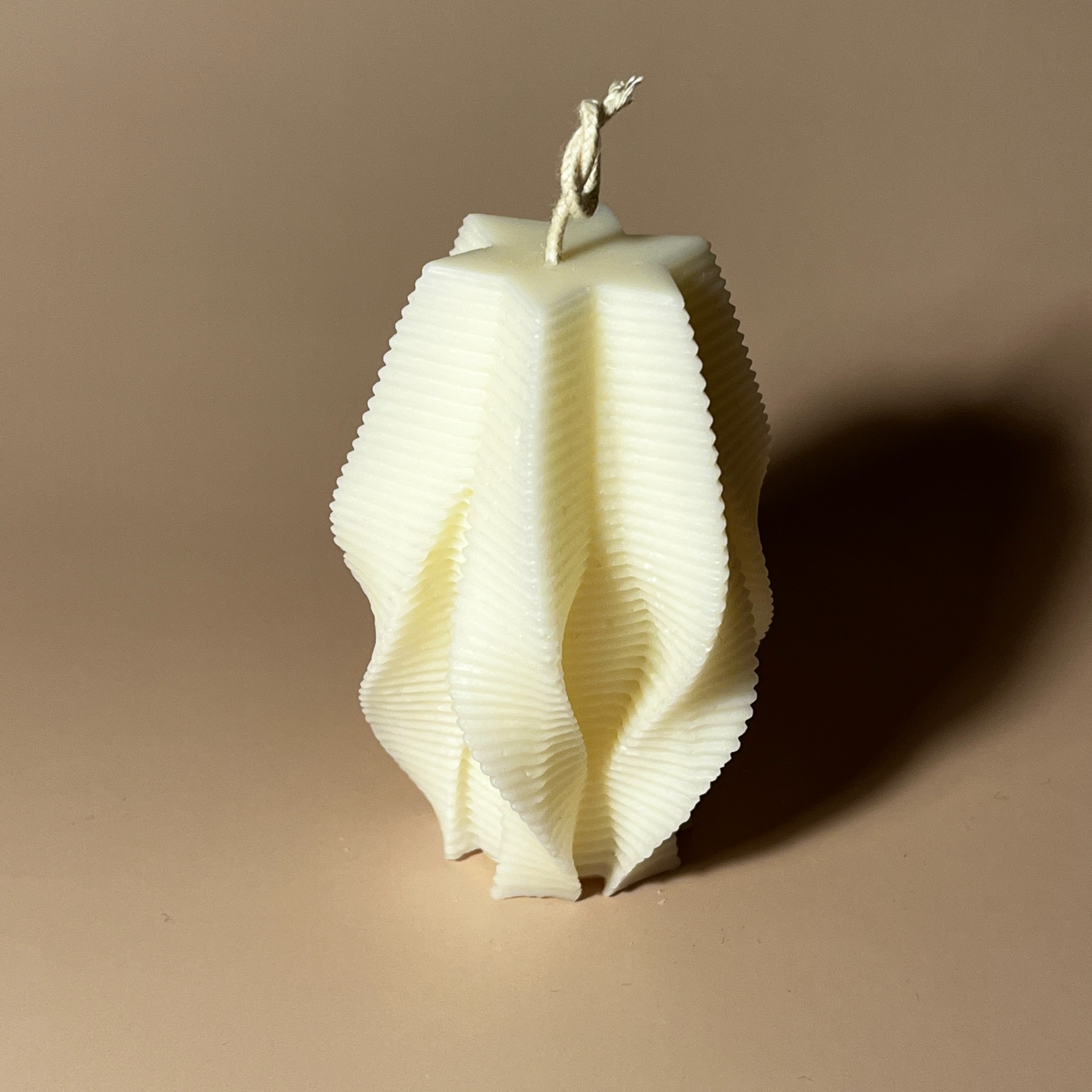 Wave je minimalistická svíčka se sochařským vlnitým tvarem a jemnou strukturou. Decentní dekorativní objekt do moderního interiéru. Ručně odlévaná ze 100% sójového vosku s bavlněným knotem.